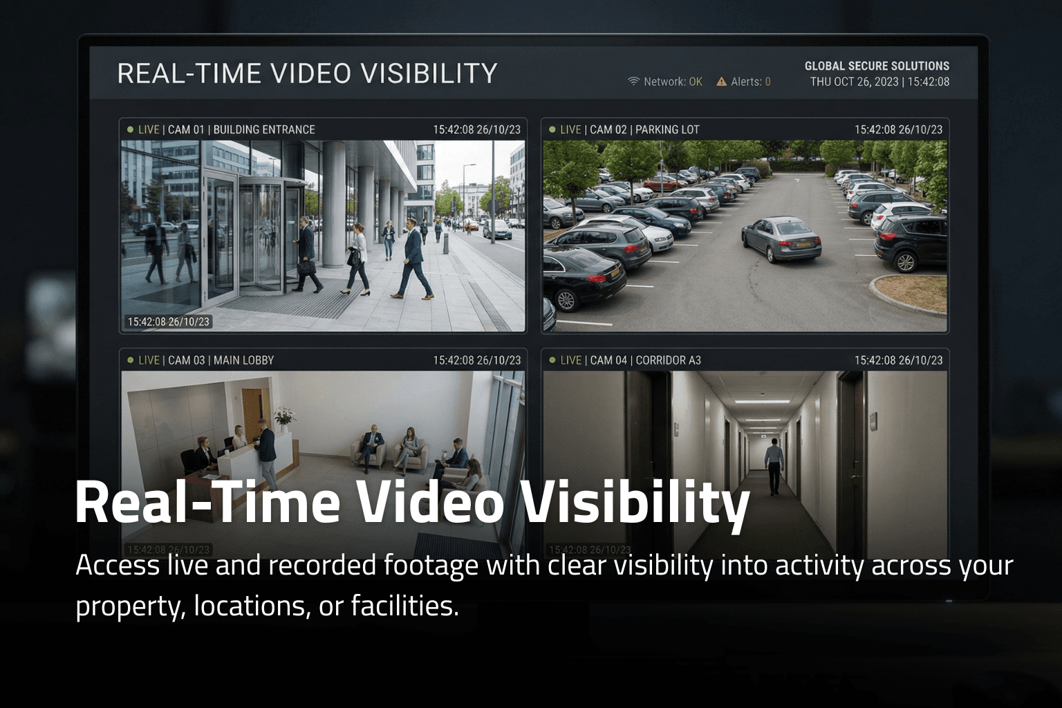 Know what is happening across your property in real time with reliable video monitoring.