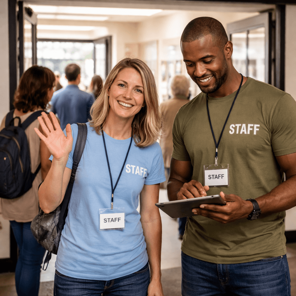 Maintain visibility of visitors entering nonprofit offices, service centers, and community spaces.